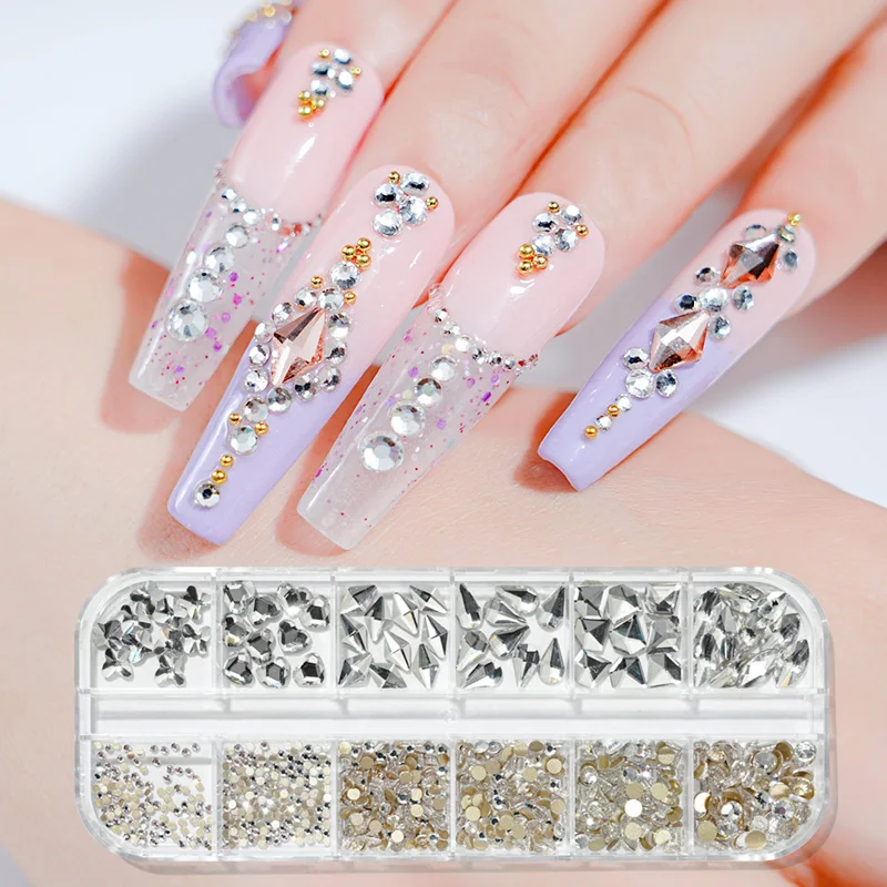 1 Box 12 Girds Colorful Nail Art Rhinestones
