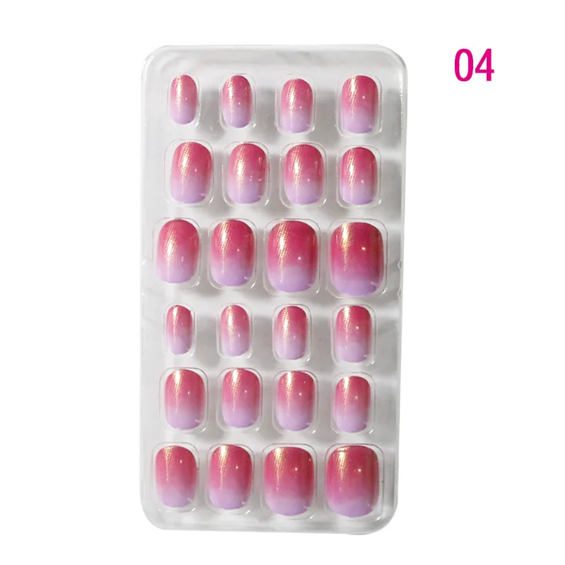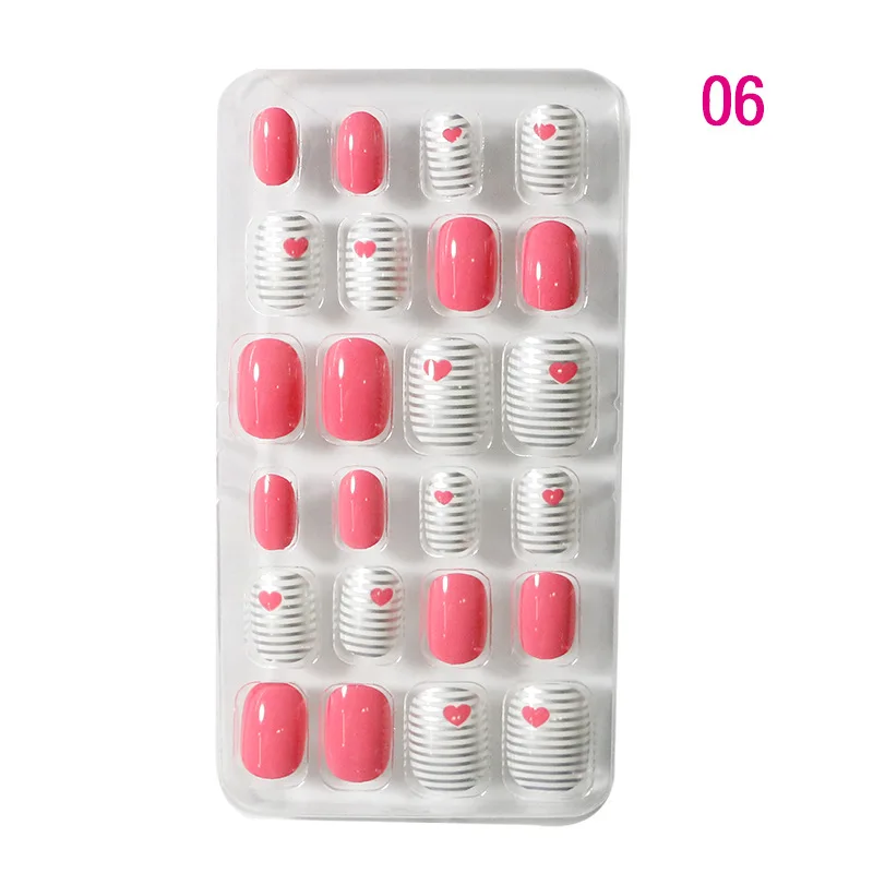 24PCS/Set Candy False Nail Tips Children Cartoon Full Cover Kid Glue Self Fake Nail Art for Girls Manicure Tips Nail Decor