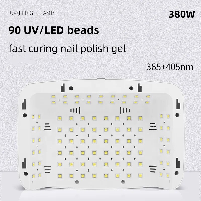 380W UV LED Nail Lamp 90 LEDS Nail Dryer Large Space for Curing All Gel Nail Polish Fast Drying Manicure Pedicure Salon Tool