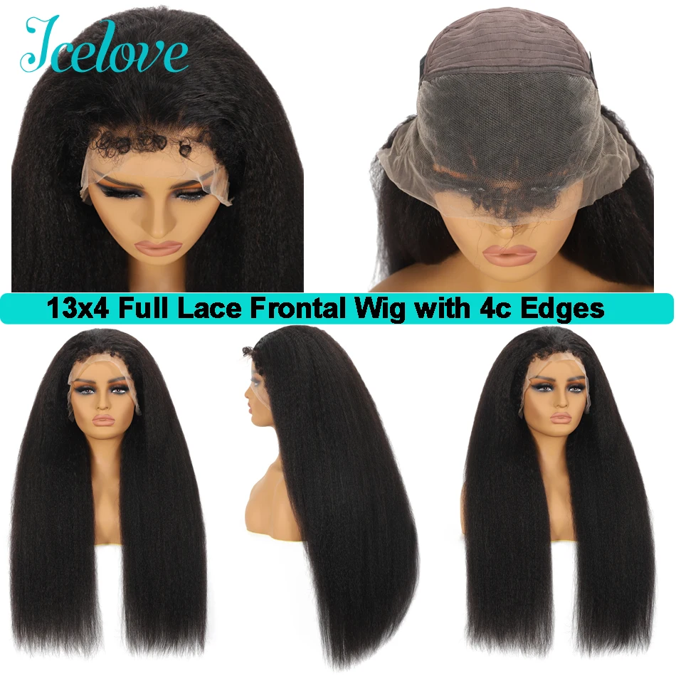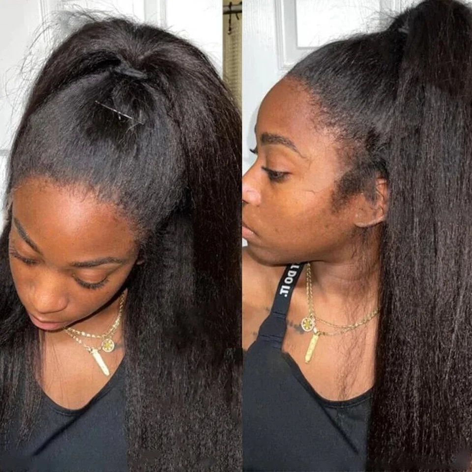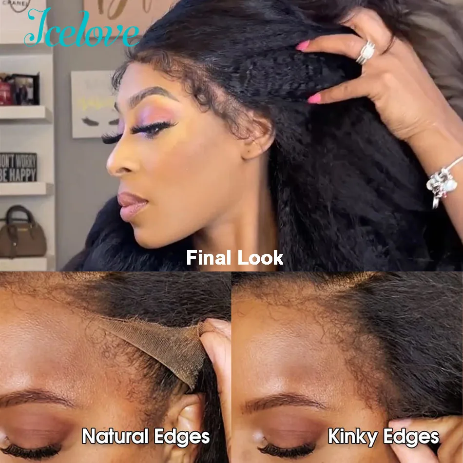 4C Kinky Edges Curly Lace Wigs 13×4 HD Lace Frontal Wig Afro Curly Baby Hair Glueless Human Hair Kinky Straight Wigs Pre Plucked