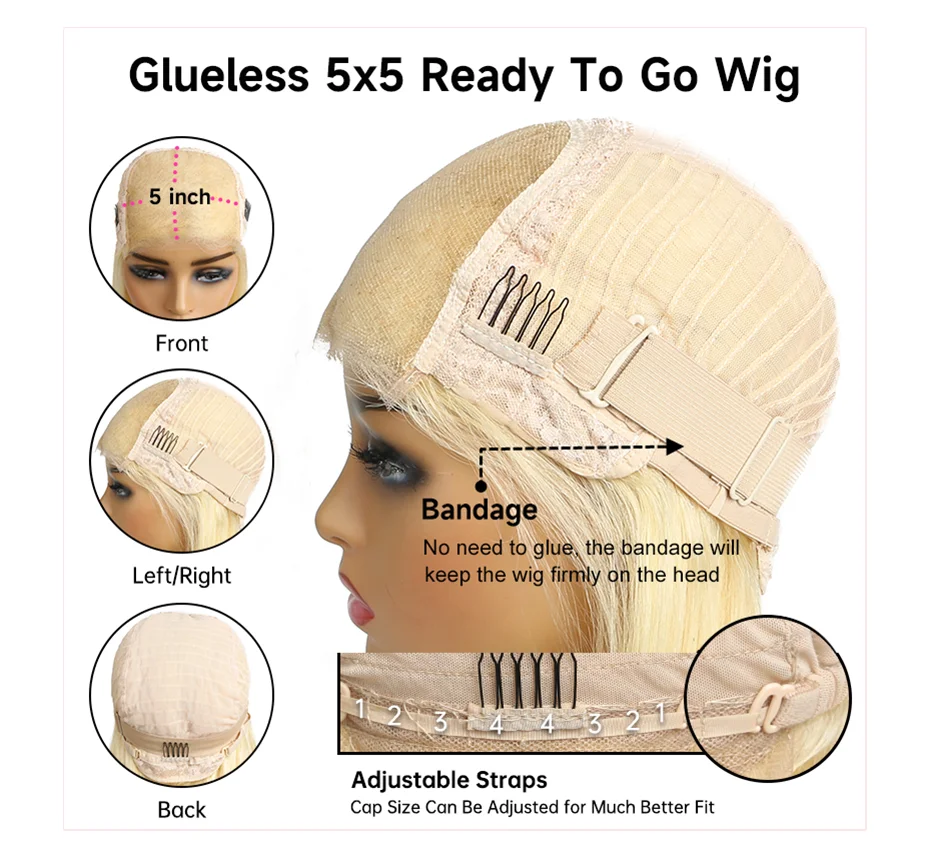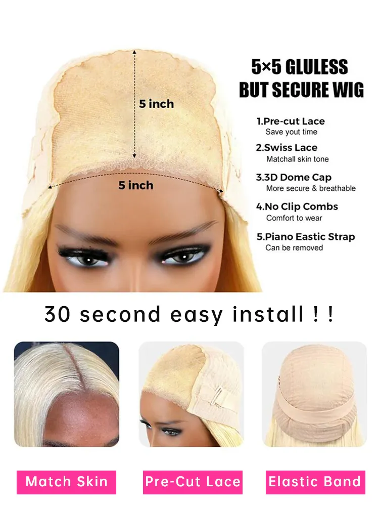 613 Blonde 5×5 Closure Wig Glueless Wig Human Hair Ready To Wear Bob Wig Brazilian Straight 13×4 13×6 Lace Front Human Hair Wigs