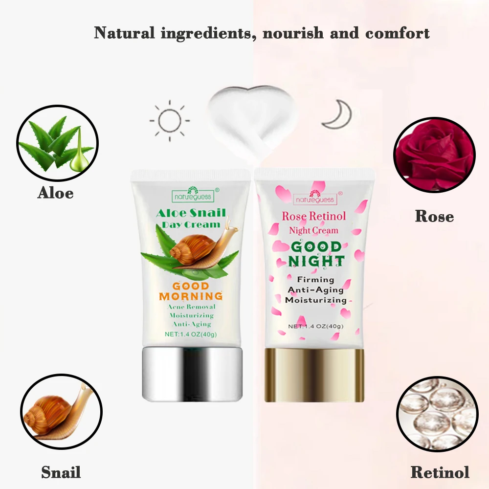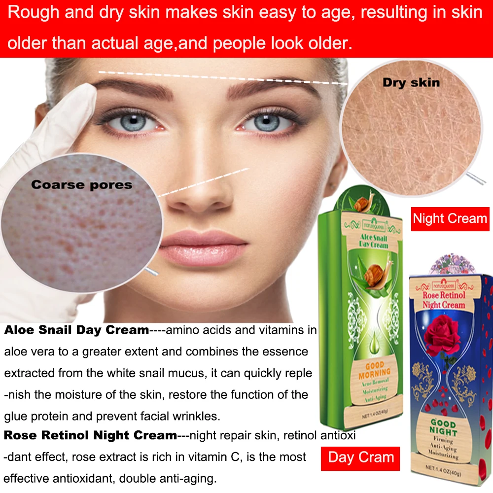 Aloe Snail Rose Retinol Day Night Face Serum Cream Whitening Moisturizing Anti Wrinkle Aging Nourishing Skin Care Korean cosmetics