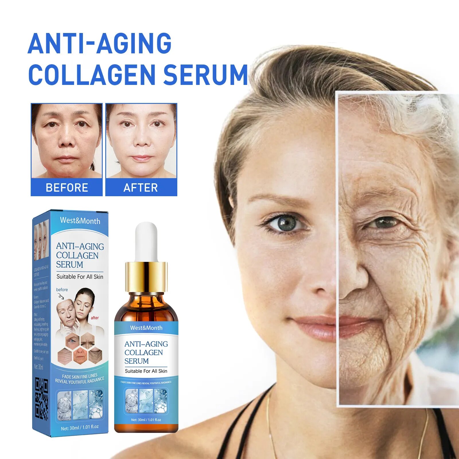 ●Function: anti wrinkle, fade fine lines, reduce dull skin, repair dry and loose skin, deeply moisturize, brighten skin tone, enhance skin elasticity, rejuvenate