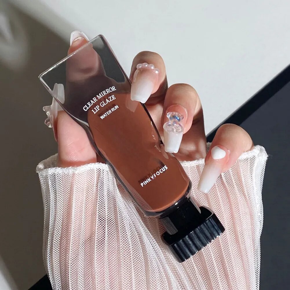 Black Mirror Water Lip Gloss Lip Glaze Transparent Glass Lip Oil Waterproof Liquid Lipstick Nude Brown Clear Tint Makeup