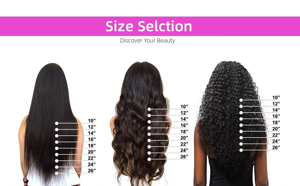 Hair Length : 12” 14” 16” 18” 20" 22" 24" 26" 28" 30" 32" 34" are on available and true to Length