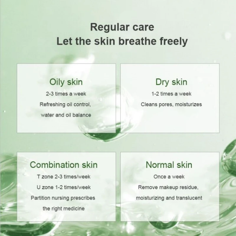 Mixed skin: It is recommended to use 2-3 times a week for T zone and 1-2 times a week for U zone.