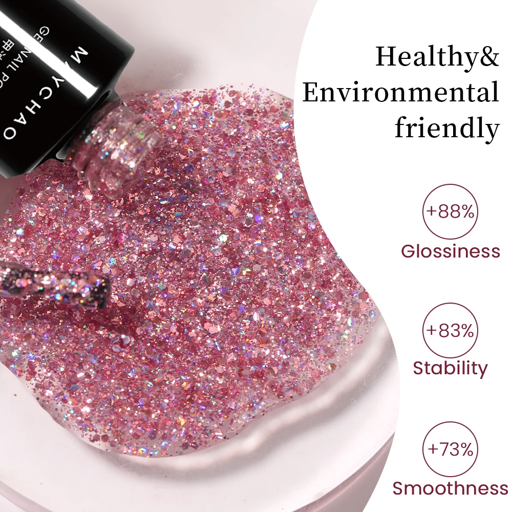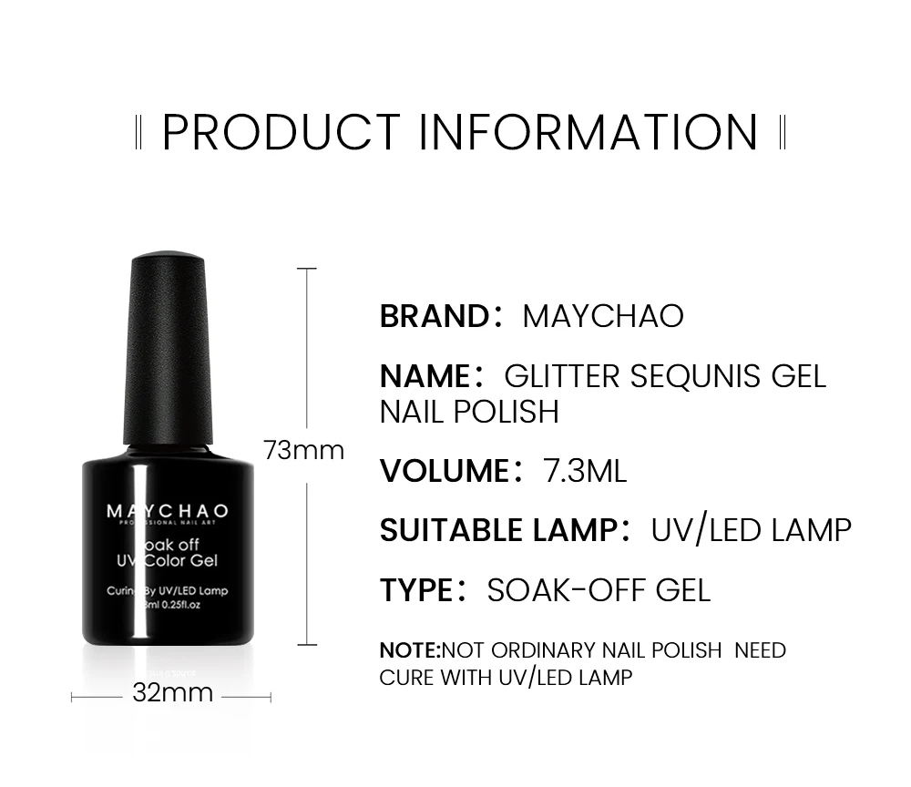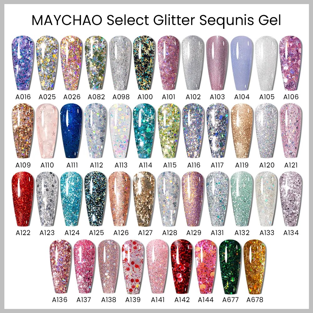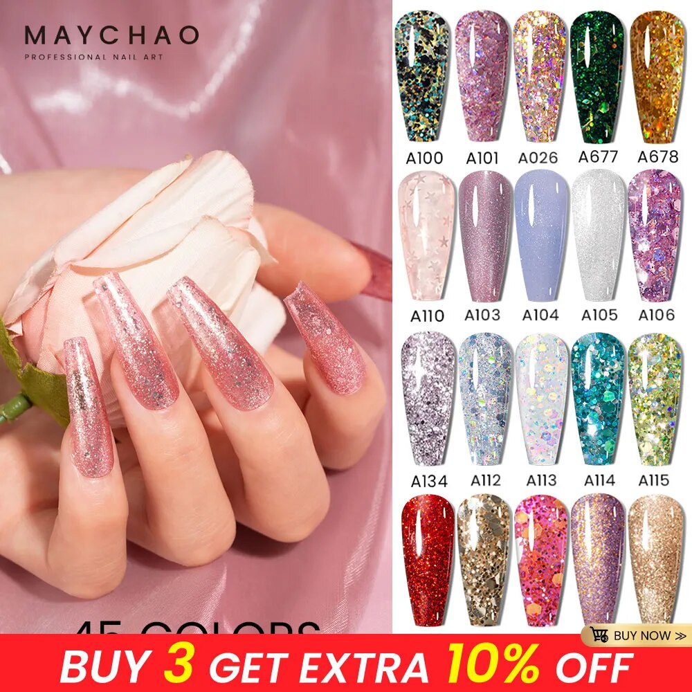 MAYCHAO Glitter Gel Nail Polish 7.3ml Semi-permanent Sequins Shiny Gel Base Top Coat Soak Off UV LED Varnish Nail Art Decoration