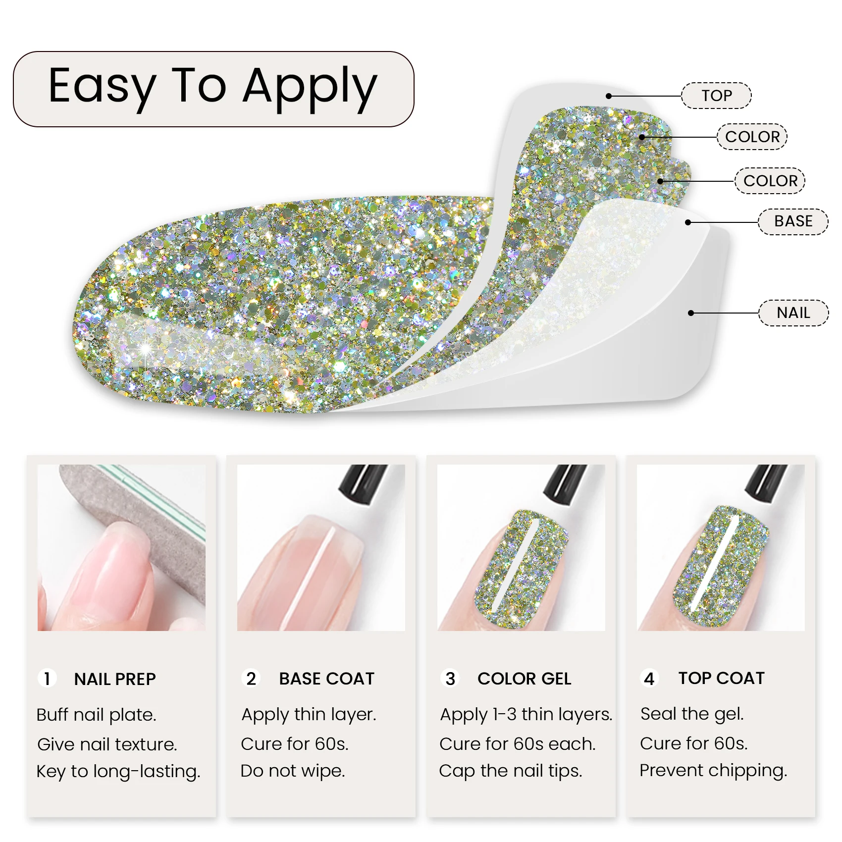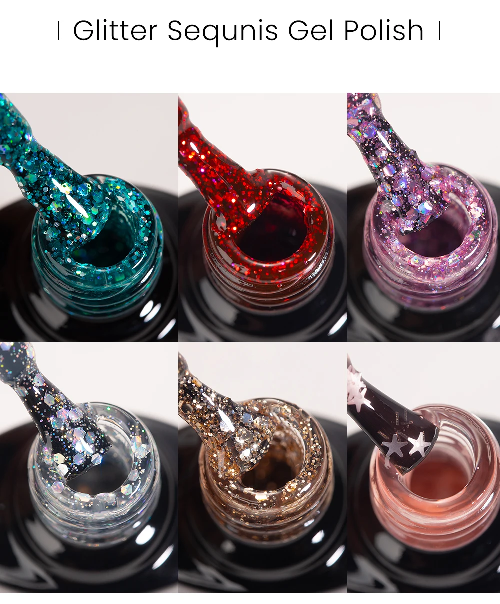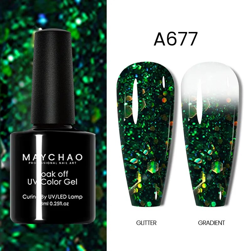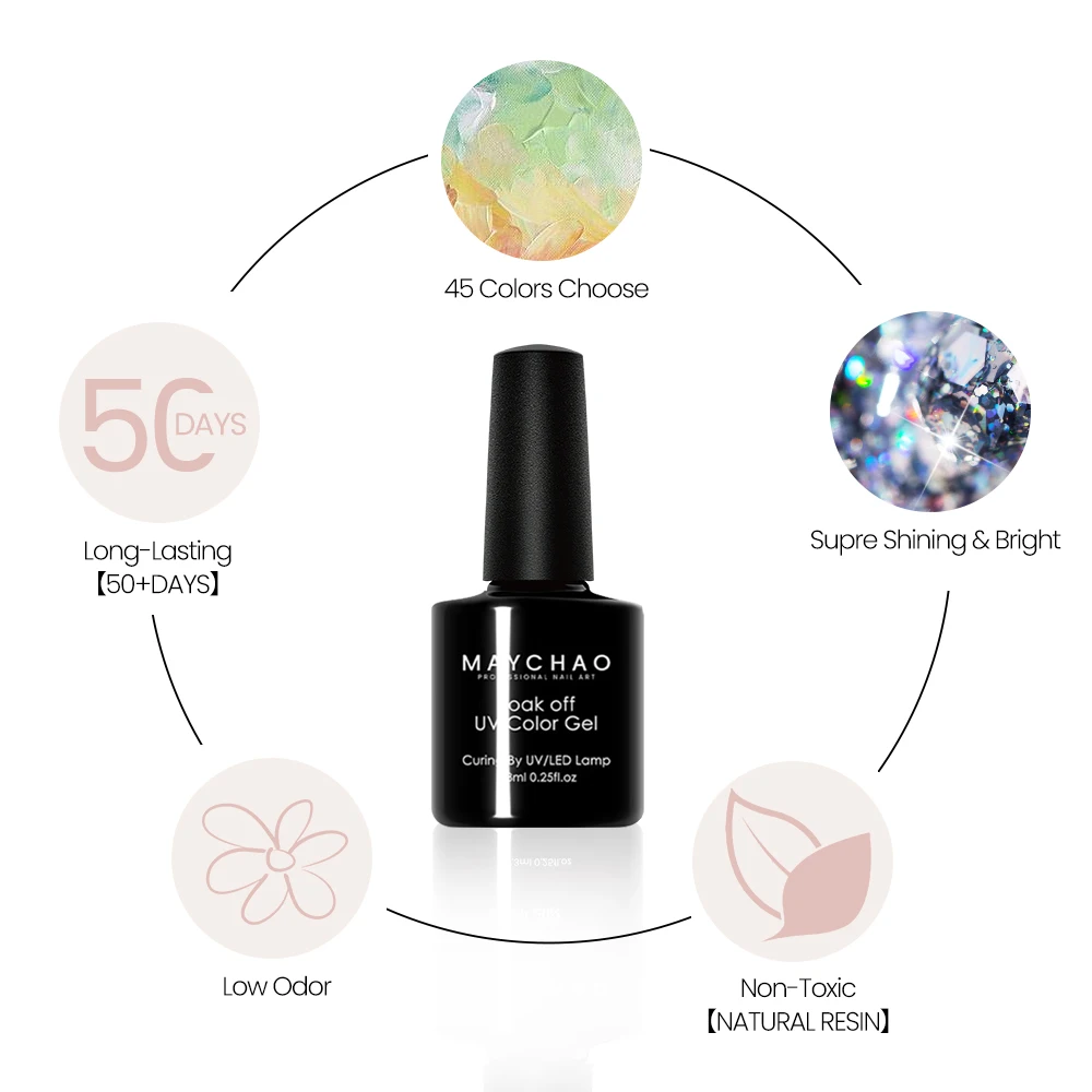 MAYCHAO Glitter Gel Nail Polish 7.3ml Semi-permanent Sequins Shiny Gel Base Top Coat Soak Off UV LED Varnish Nail Art Decoration