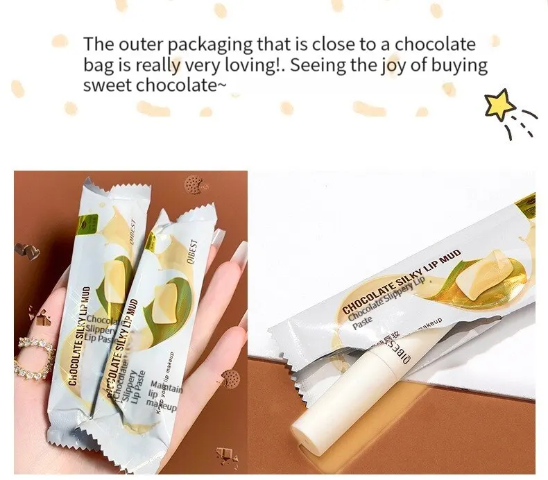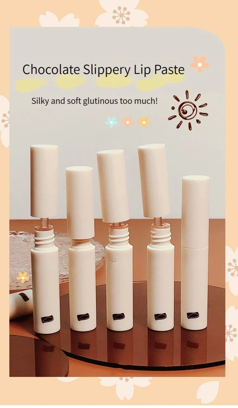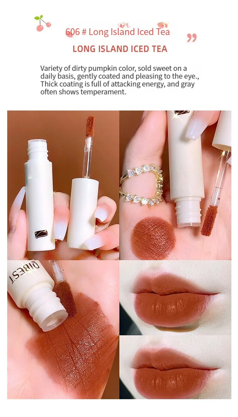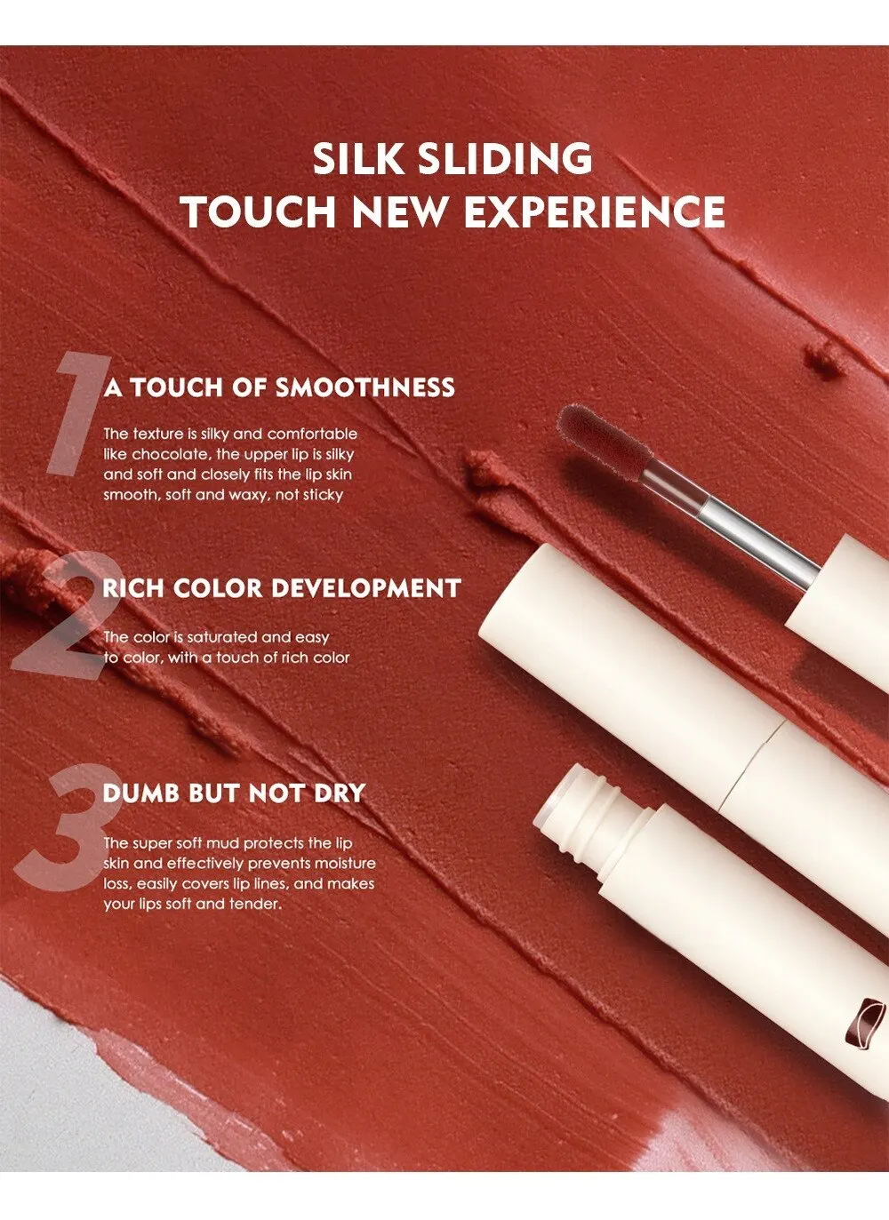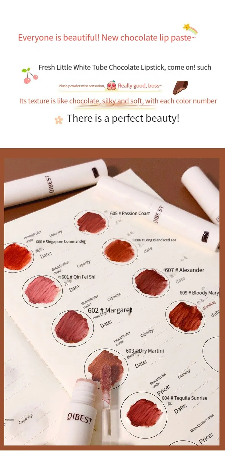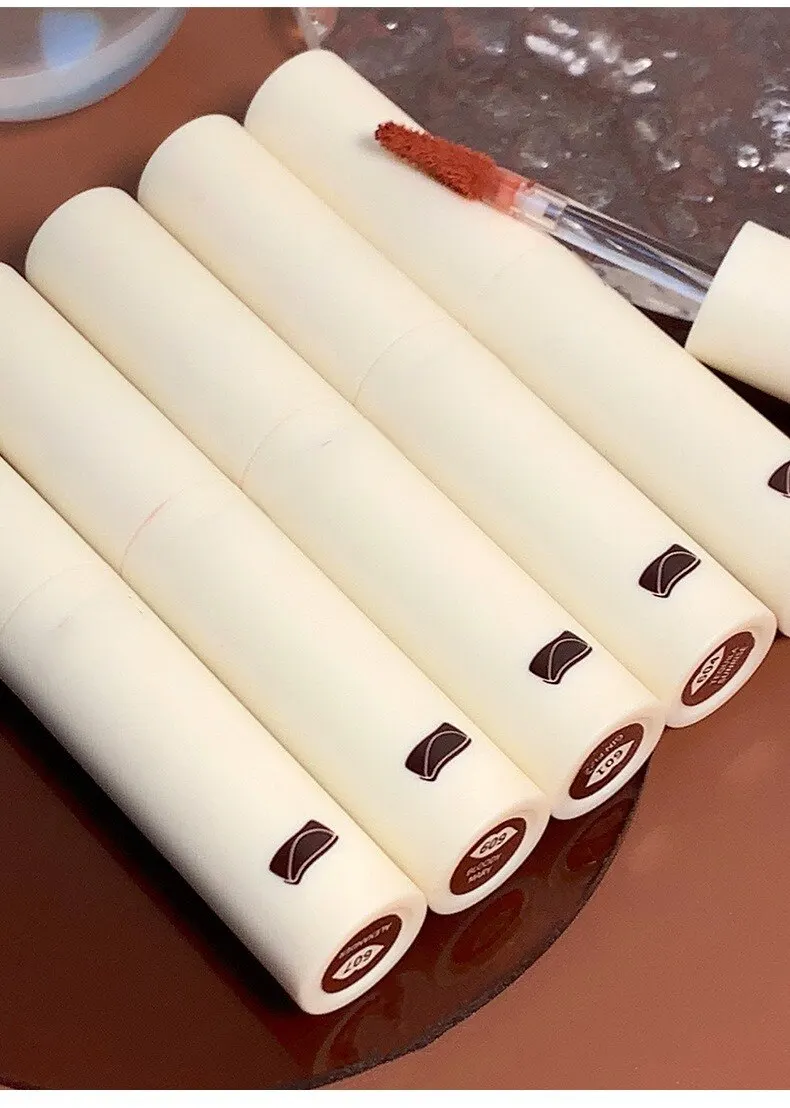 Trendy lip gloss lipstick with cool chocolate packaging, waterproof and long lasting, velvet lip glaze cosmetics, red lipstick for women.