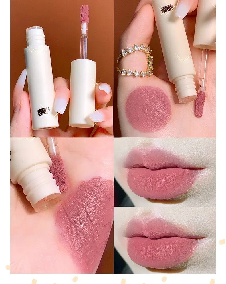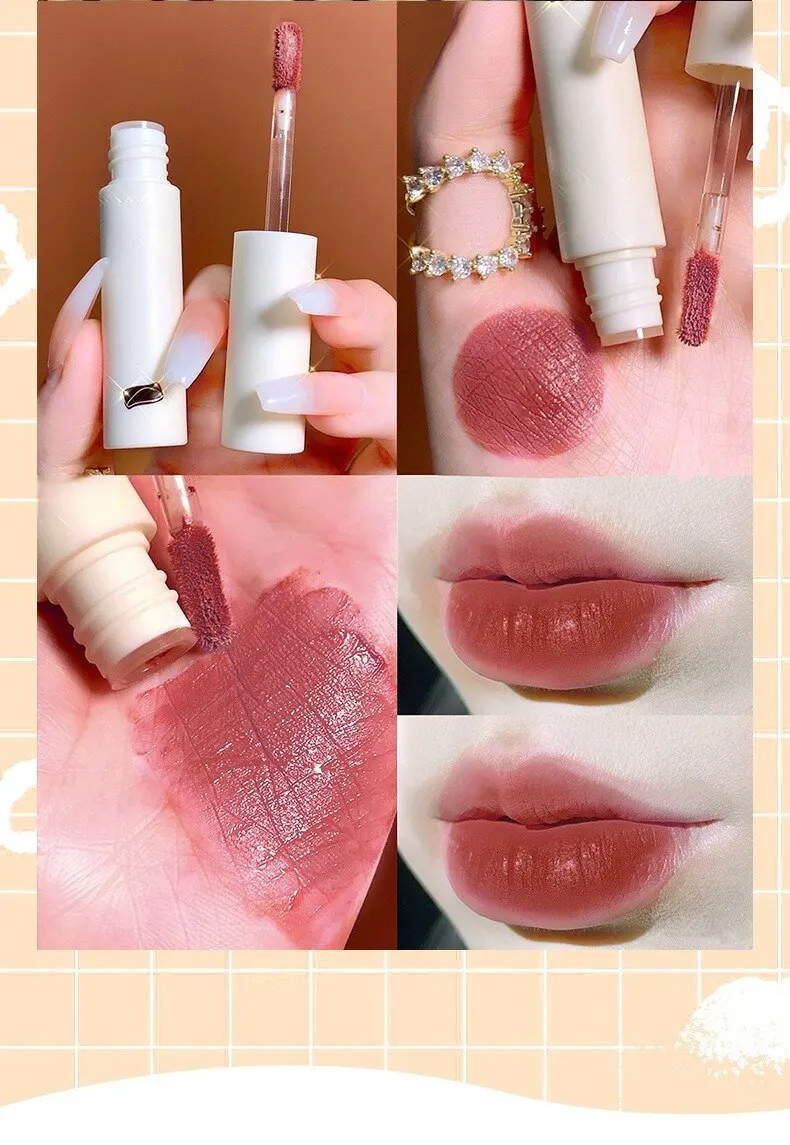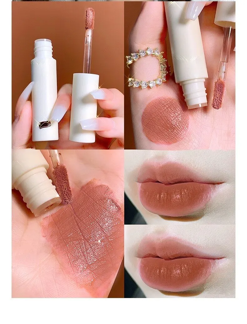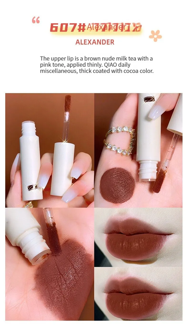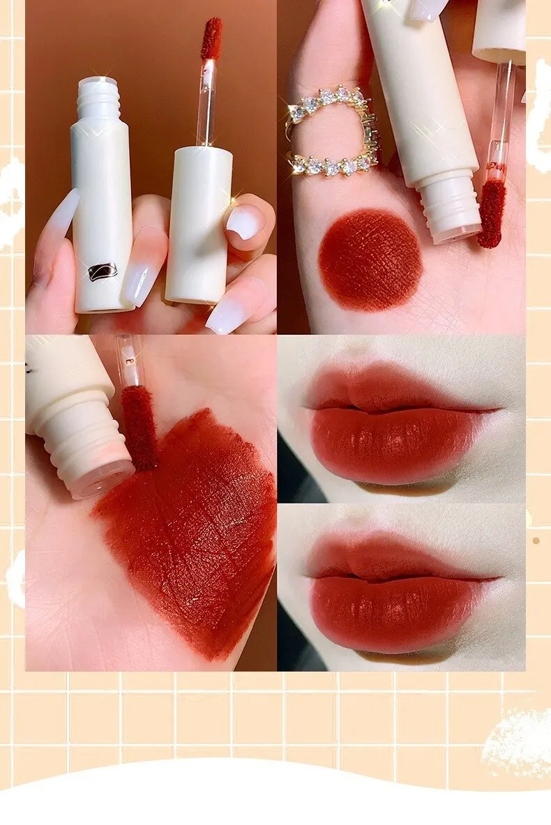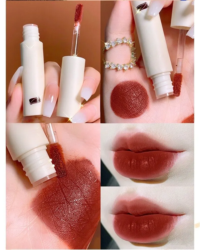 Trendy lip gloss lipstick with cool chocolate packaging, waterproof and long lasting, velvet lip glaze cosmetics, red lipstick for women.