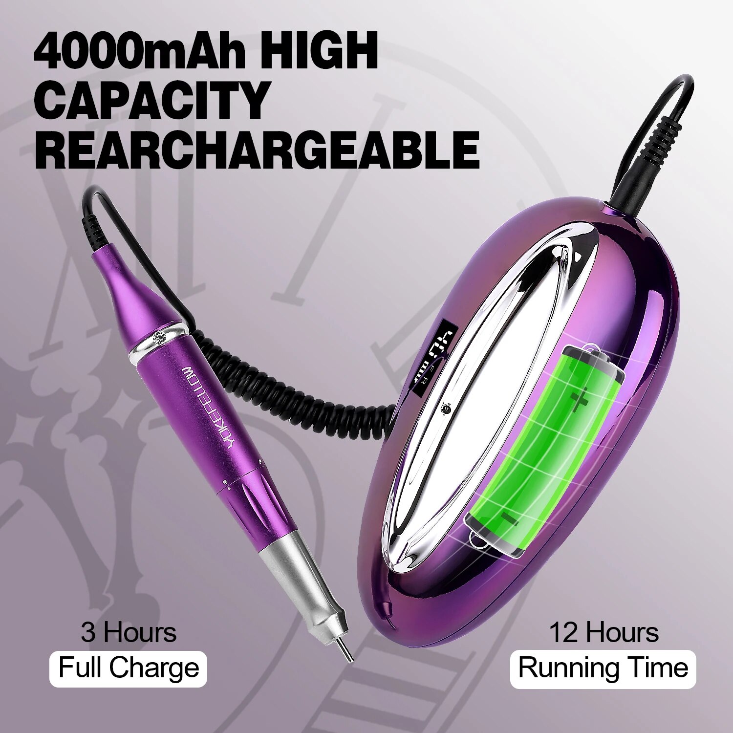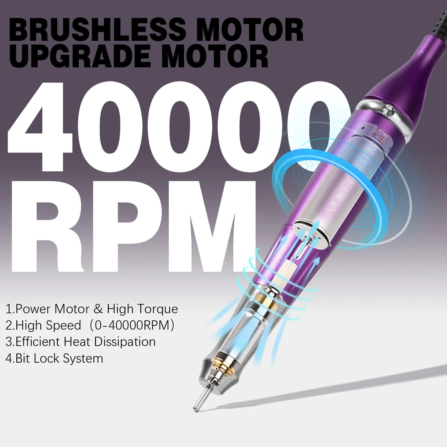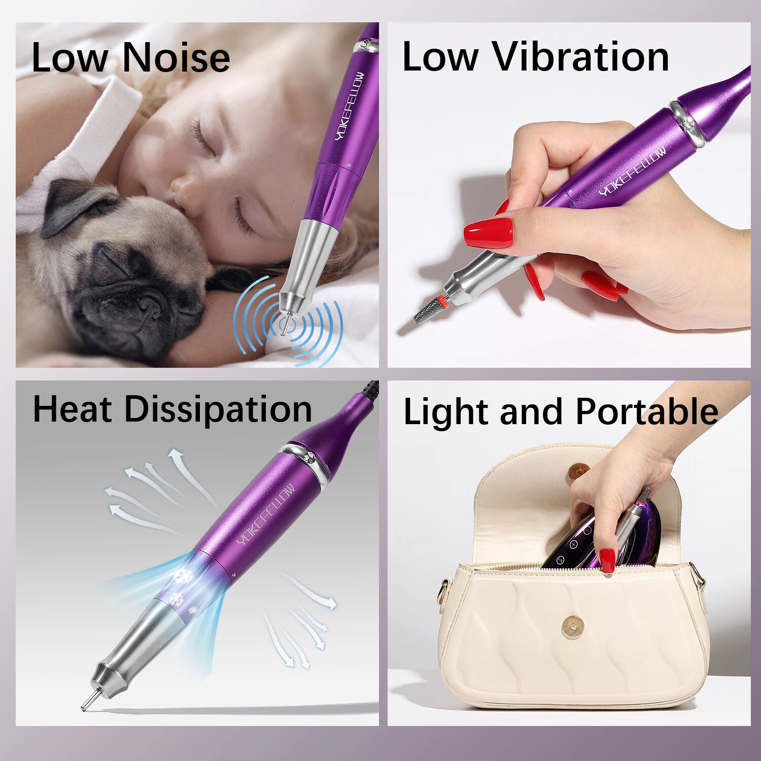 This professional nail drill is equipped with an updated brushless high-quality motor, higher stability, and long life. Even at a high speed (0-40000 RPM) this electric nail file works smoothly and extremely quietly. Easy to use, smooth rotation, professional technician or DIY novice, it is the most suitable file.